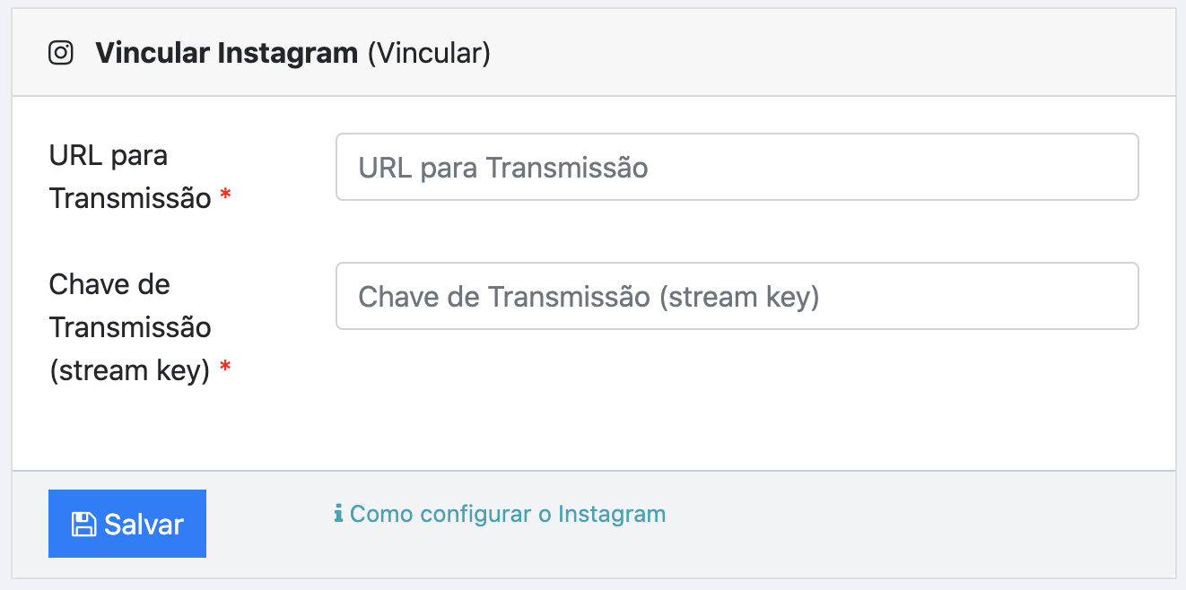 O YellowDuck irá gerar uma RTMP URL e uma Stream Key para o Instagram. Você precisará dessa informação logo mais.